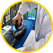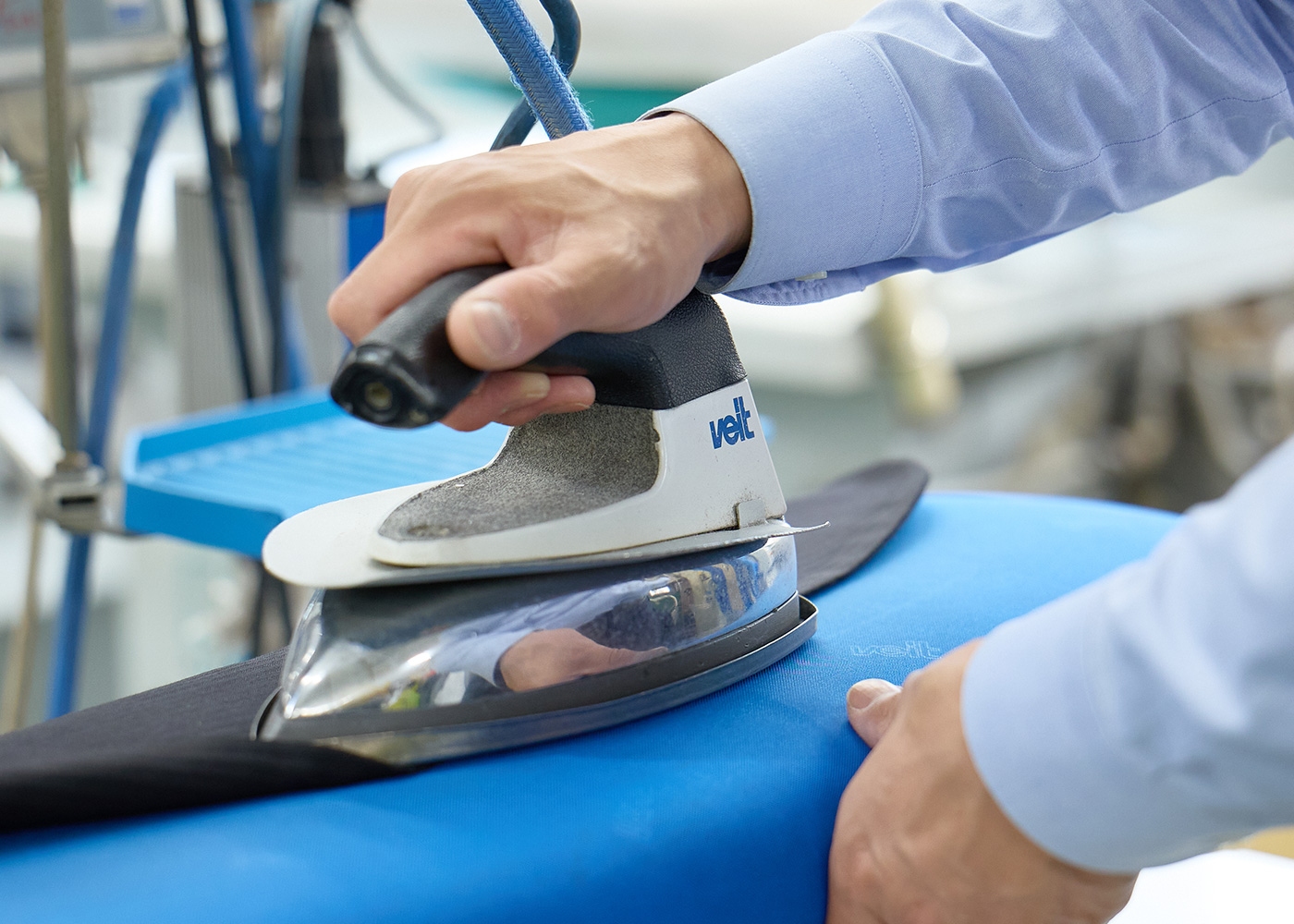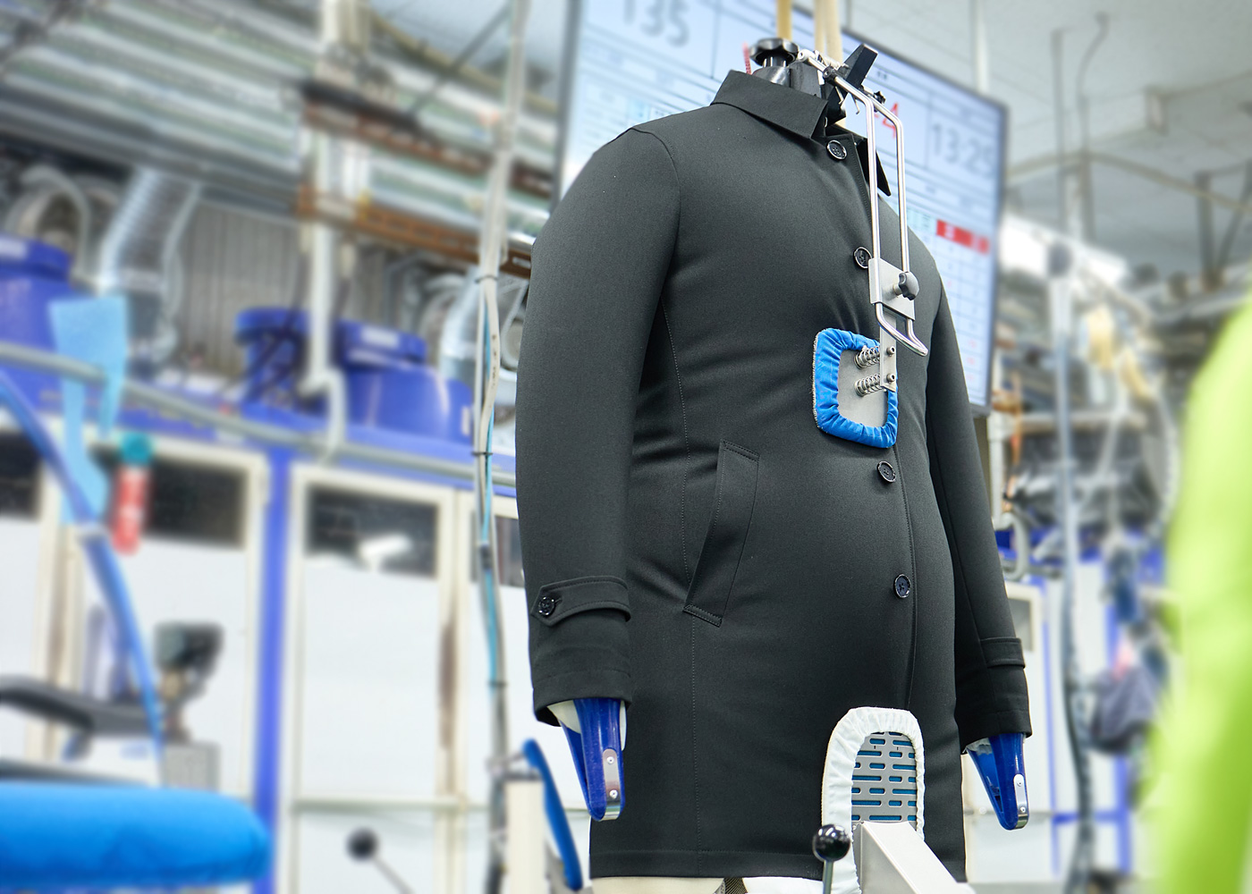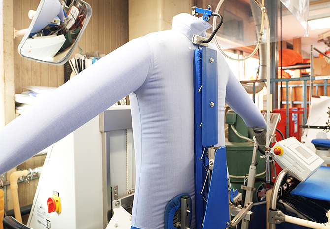 世界の一流アパレルメーカーが、出荷前の最終成形プレスに使用する技術とドイツ製の高性能機械を導入してクリーニングします。