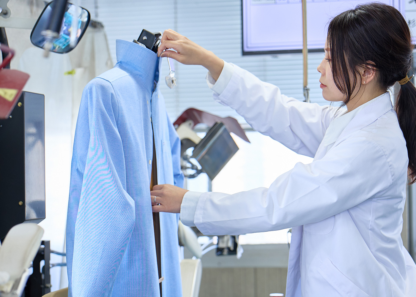 また生地を傷めないよう、衣服を止めた状態で立体的に乾燥させる「静止乾燥」を採用しています。