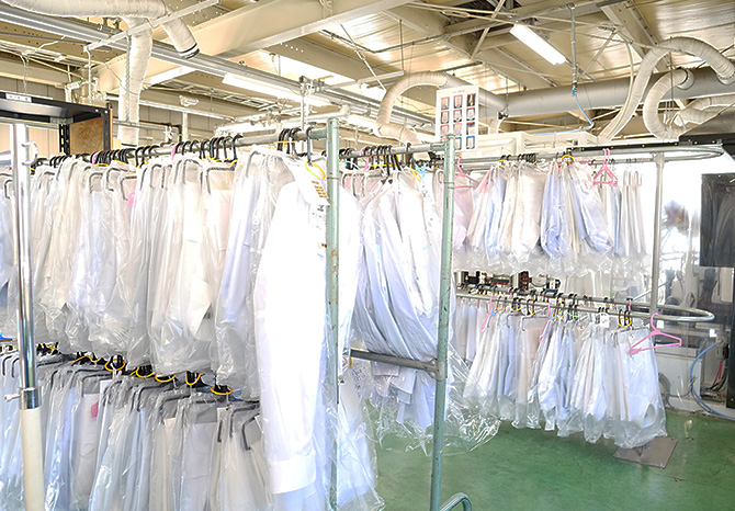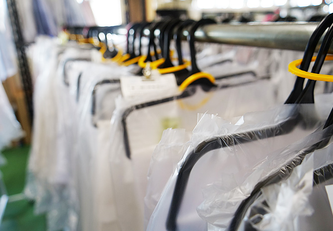 弊社は提携工場や請負業者を持たず、高品質にこだわり、自社工場ですべてクリーニング、全行程責任を持って管理しております。