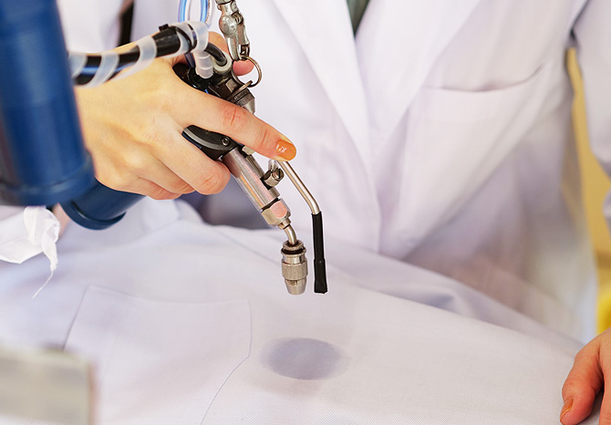 一点一点丁寧に国家資格者がシミの種類と状態を分析し、高度な技術でシミ抜きいたします。