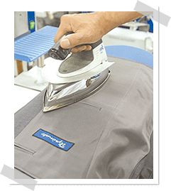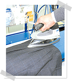 お腹・背中の横ジワ・ポケット口のシワ緩みをキレイに取ります。プレスのポイントは元の状態に戻すことです。