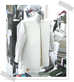 首まわりの縮みを戻します。ストレッチプレス。ボタンわれ防止専用パット使用。